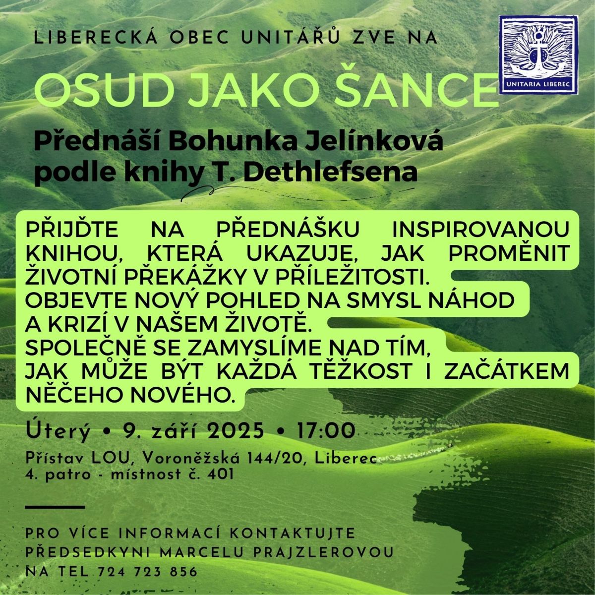 • 9.2025 Literární přednáška o knize Osud jako šance 9. 9. 2025